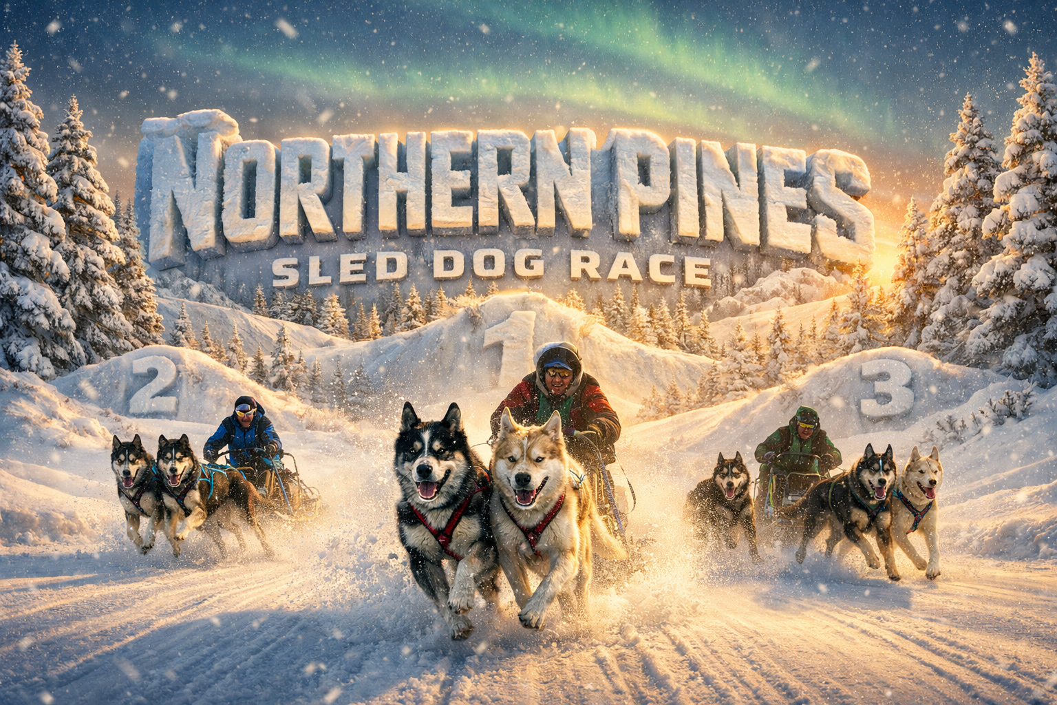 Run the Northern Pines: An anthem for the Northern Pines Sled Dog Race, this piece brings to life the thrill in the chute, the echo of cheers through the pines, and the energy that sweeps across the community when teams take to the trail.